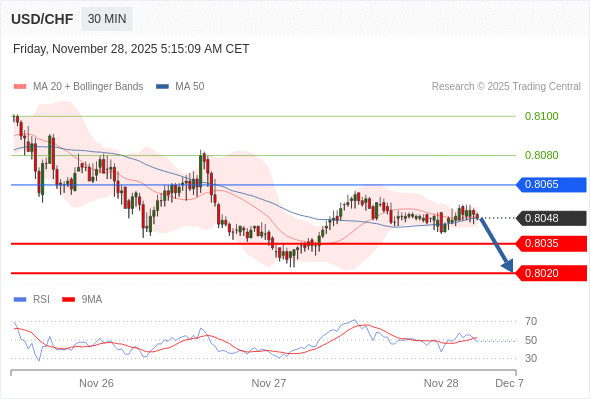 在 0.8065 之下,看跌,目标价位为 0.8035 ,然后为 0.8020 。